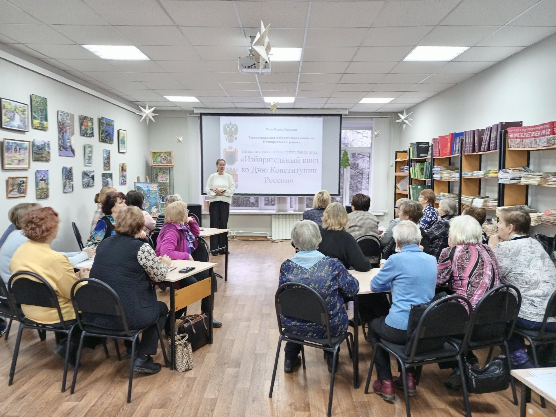 Сегодня библиотека города Питкяранта совместно с председателем ТИК Питкярантского района Сонгиной Ириной Юрьевной провели квиз "Думай, действуй, выбирай", посвящённый Дню Конституции России.
