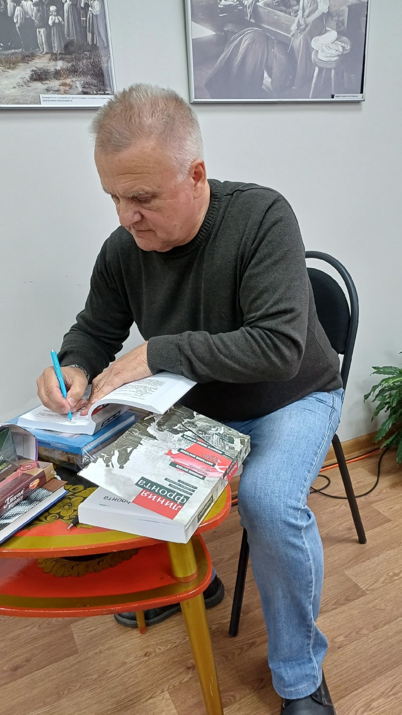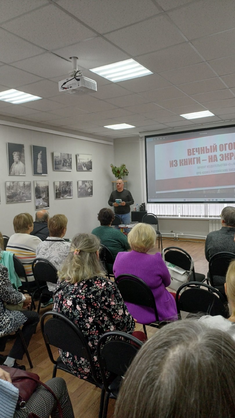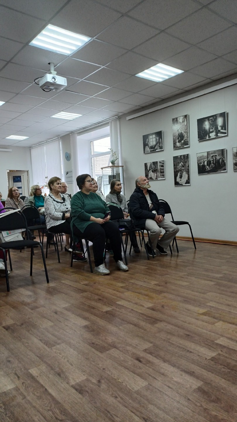 Вторая половина мероприятия была направлена на более взрослое поколение. Геннадий Николаевич открыл встречу показом своего фильма, который произвел на зрителей сильное впечатление. После просмотра состоялась интересная беседа, в ходе которой обсуждались темы, затронутые в фильме, а также вопросы творчества и вдохновения. Затем Наталия Михайловна прочитала свои стихи, погрузив слушателей в мир поэзии и эмоций. Ее выступление стало прекрасным завершением встречи.