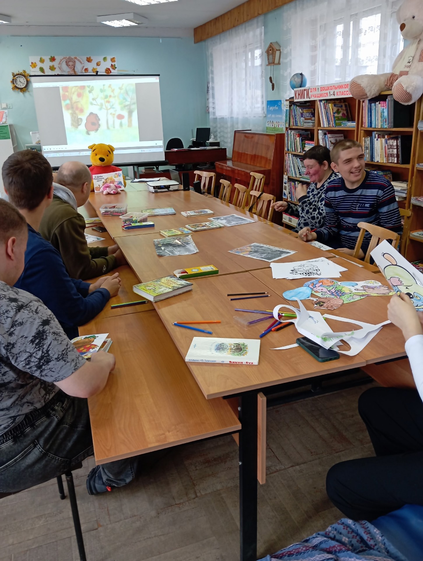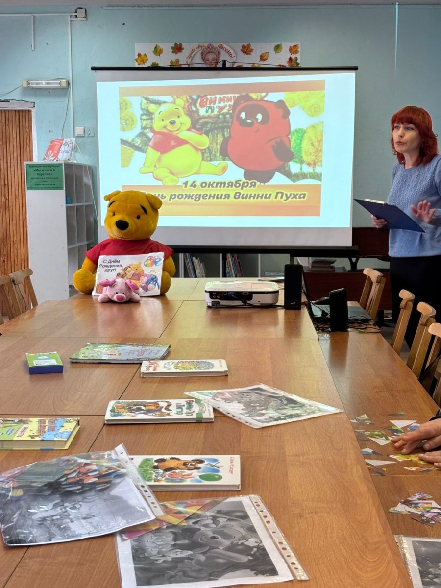 21 октября для ребят из подразделения ГБУ СО "КЦ СОН РК" по Питкярантскому округу был проведён литературный час "На празднике у Винни", посвящённый дню рождения Винни-Пуха. В начале мероприятия сотрудник библиотеки ознакомил посетителей с увлекательной историей появления забавного литературного персонажа, сопроводив свой рассказ красочной презентацией. Затем ребята отвечали на вопросы литературной викторины, с увлечением вспоминали, что больше всего на свете любил Винни-Пух, какие подарки принесли Винни и Пятачок своему другу ослику Иа, почему Пух застрял в норе у Кролика, а также веселые " кричалки" и "вопилки" очаровательного медвежонка. В ходе мероприятия наши гости вспоминали забавные цитаты Винни-Пуха и его друзей, отгадывали загадки и персонажей по прочитанным отрывкам из книг, составляли пазлы и разукрашивали картинки со сказочными героями, из которых создали праздничный коллаж. А завершился литературный час показом отечественных мультфильмов, созданных на киностудии "Союзмультфильм", в которых веселый медвежонок говорит голосом замечательного советского актёра Евгения Леонова.