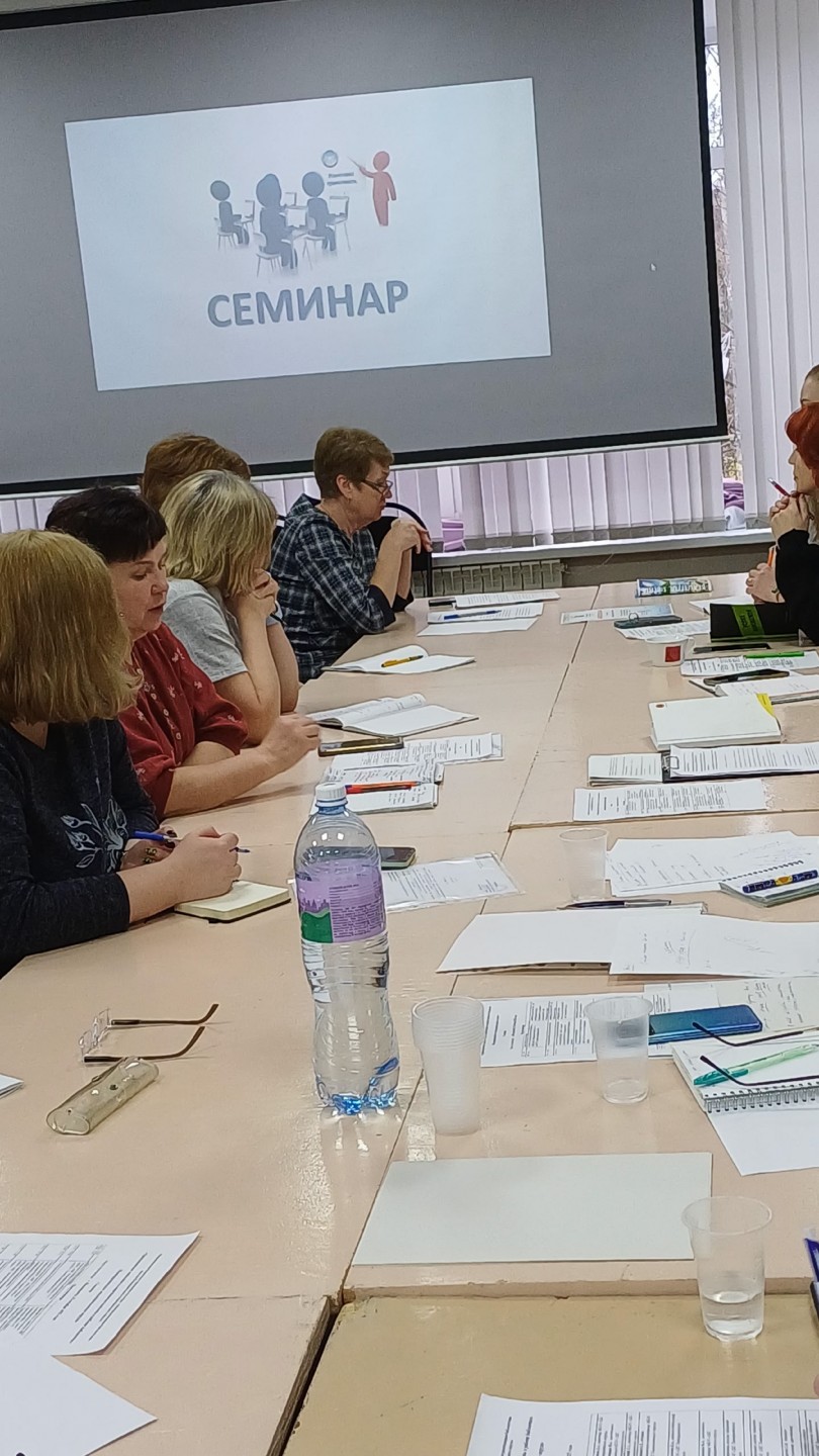 На семинаре обсуждались современные подходы в работе с молодежной аудиторией , информационная деятельность библиотек в социальных сетях. Впервые в работе семинара принимала участие психолог-консультант Смирнова Ольга Валерьевна с арт-терапевтической практикой "Сундучок ресурсов" по диагностике, профилактике профессионального выгорания.