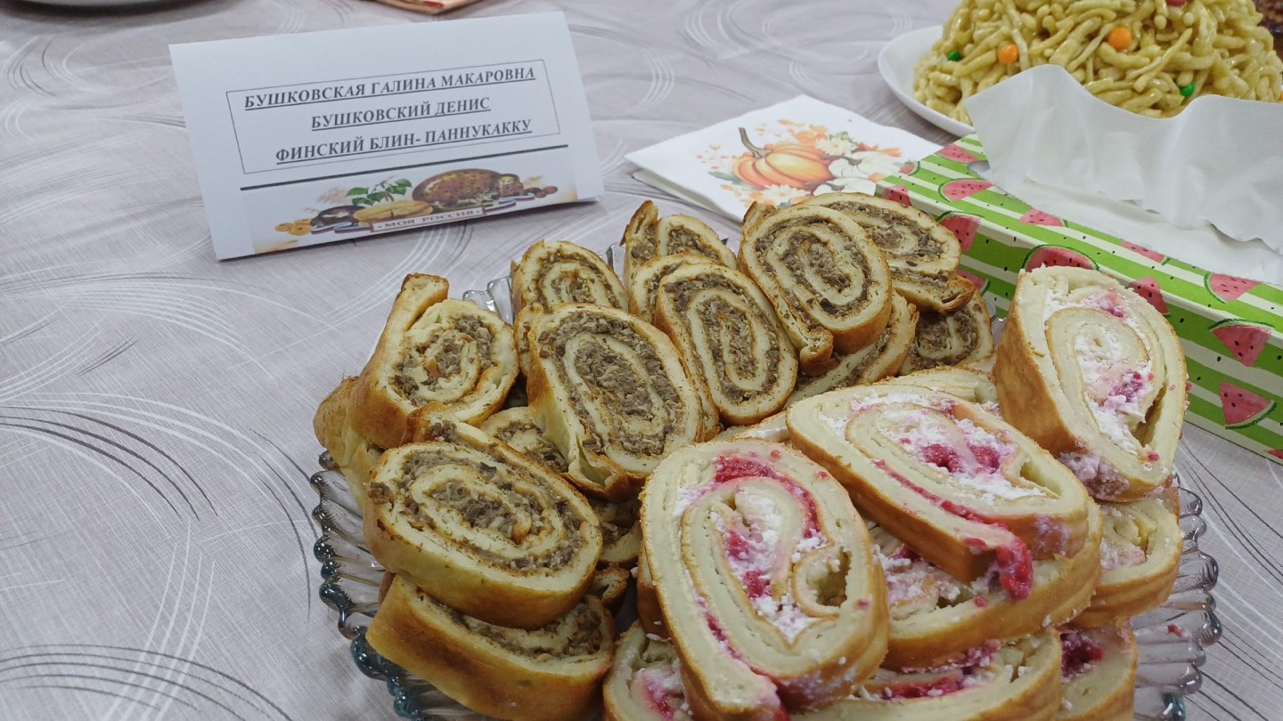 Финскую кухню представляла команда из МБОУ ДО «Центр развития образования», участниками, которой были Бушковская Галина Макаровна, Бушковский Денис, Игнатенко Татьяна Николаевна. Они приготовили «Паннукакку» — финский блин с различными начинками.