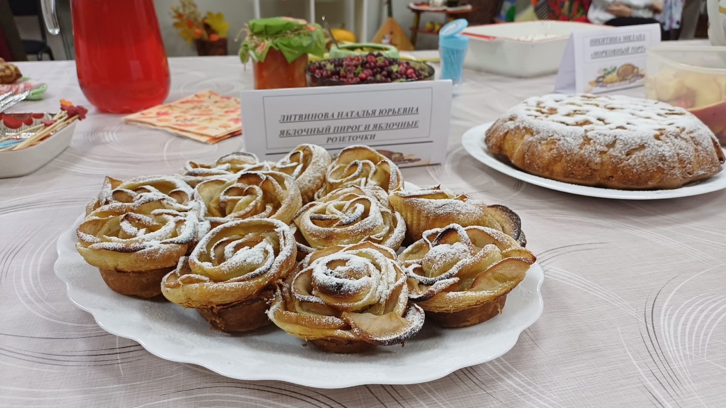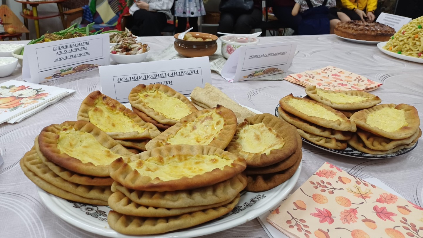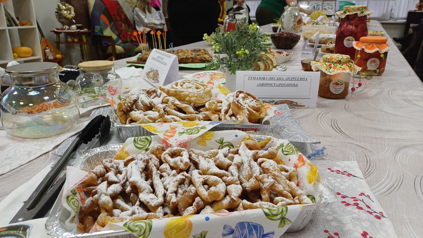 Карельскую кухню представили несколько участников: Осадчая Людмила Андреевна, которая приготовила традиционные калитки с разными начинками, и Тумазова Оксана Андреевна – хворост (розанцы).