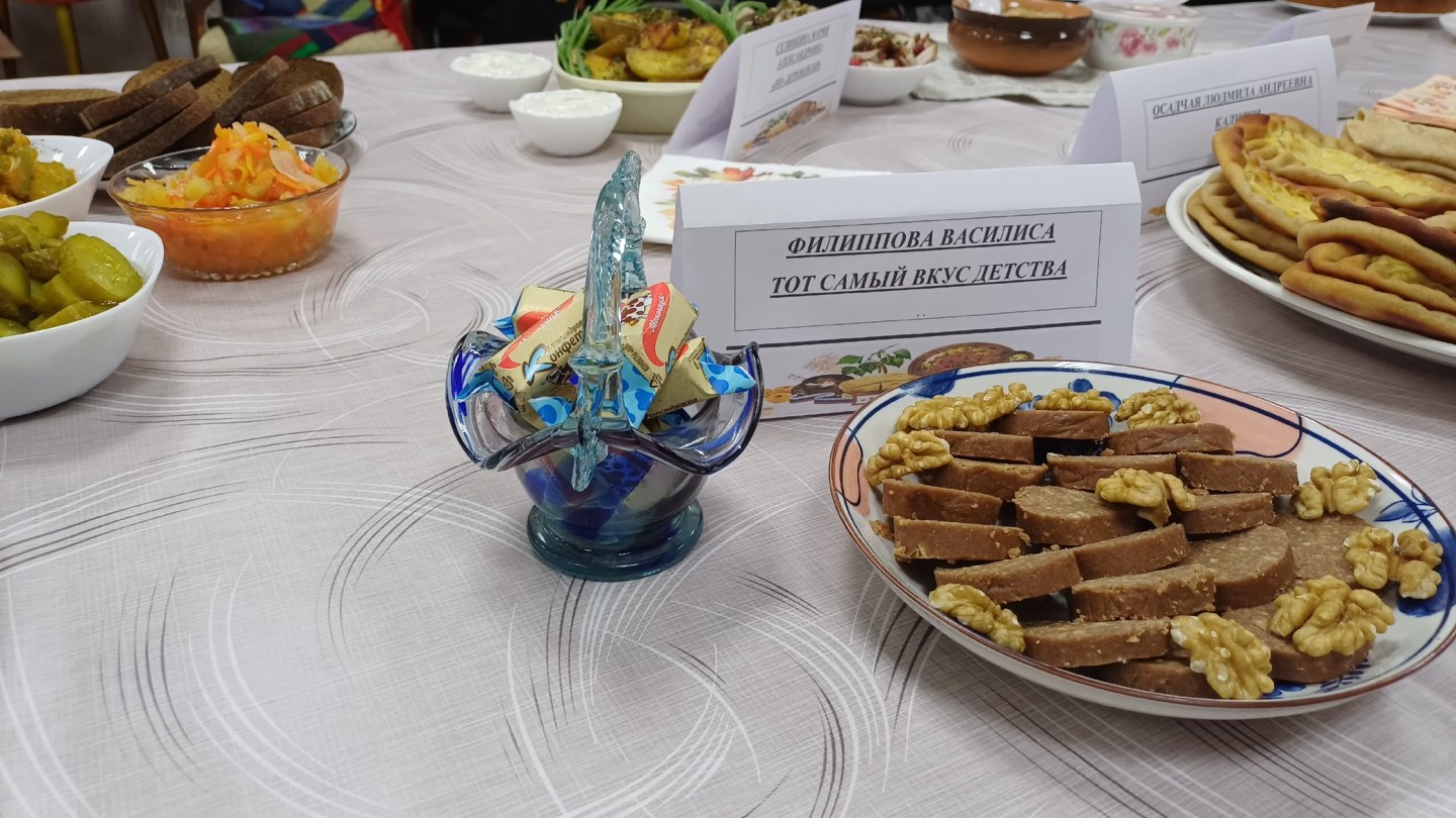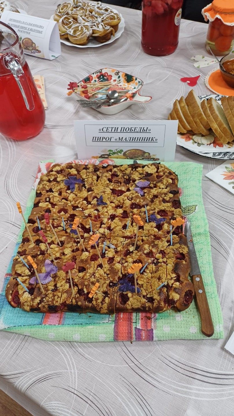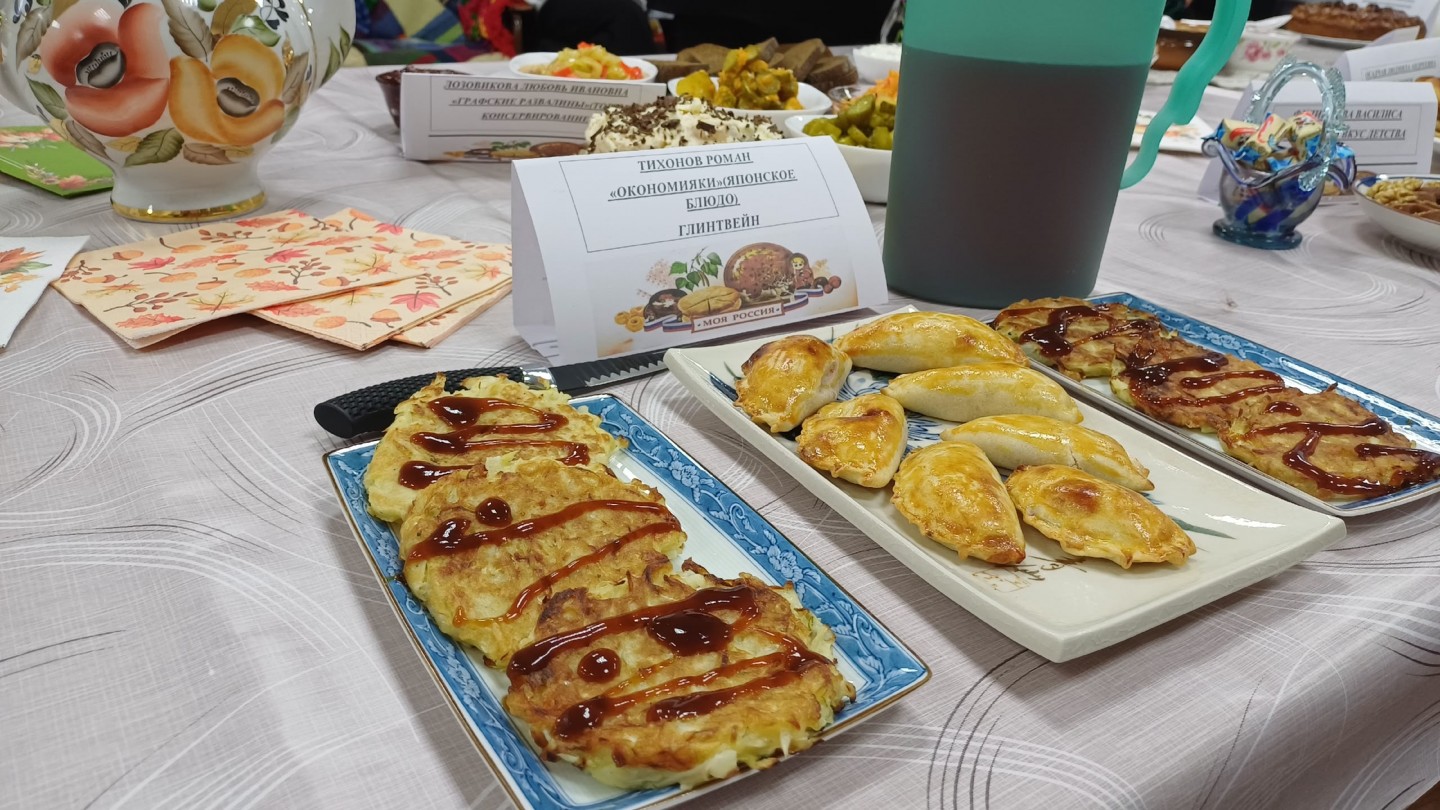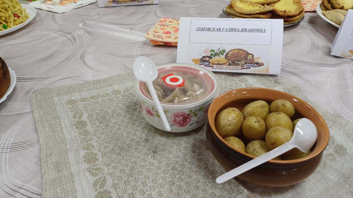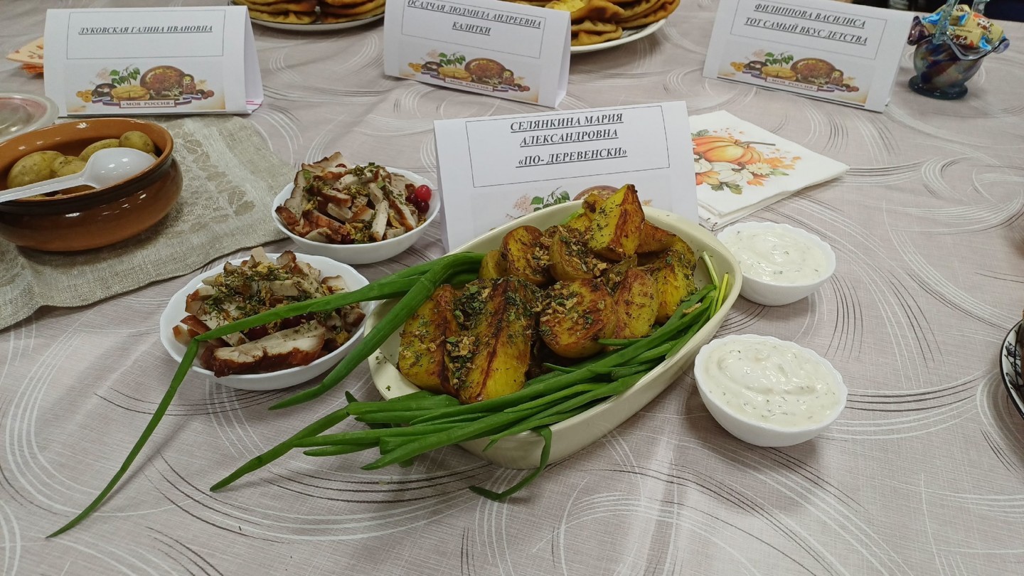 Русскую кухню представляли участники коллектива «Сети Победы» с пирогом «Малинник», Литвинова Наталья Юрьевна с яблочным пирогом и яблочными розеточками, Лозовикова Любовь Ивановна с тортом «Графские развалины», Селянкина Мария Александровна - с блюдом «По - деревенски». Галина Ивановна Луковская представила на фестивале любимое семейное блюдо - соленые грузди с картошкой в мундире.