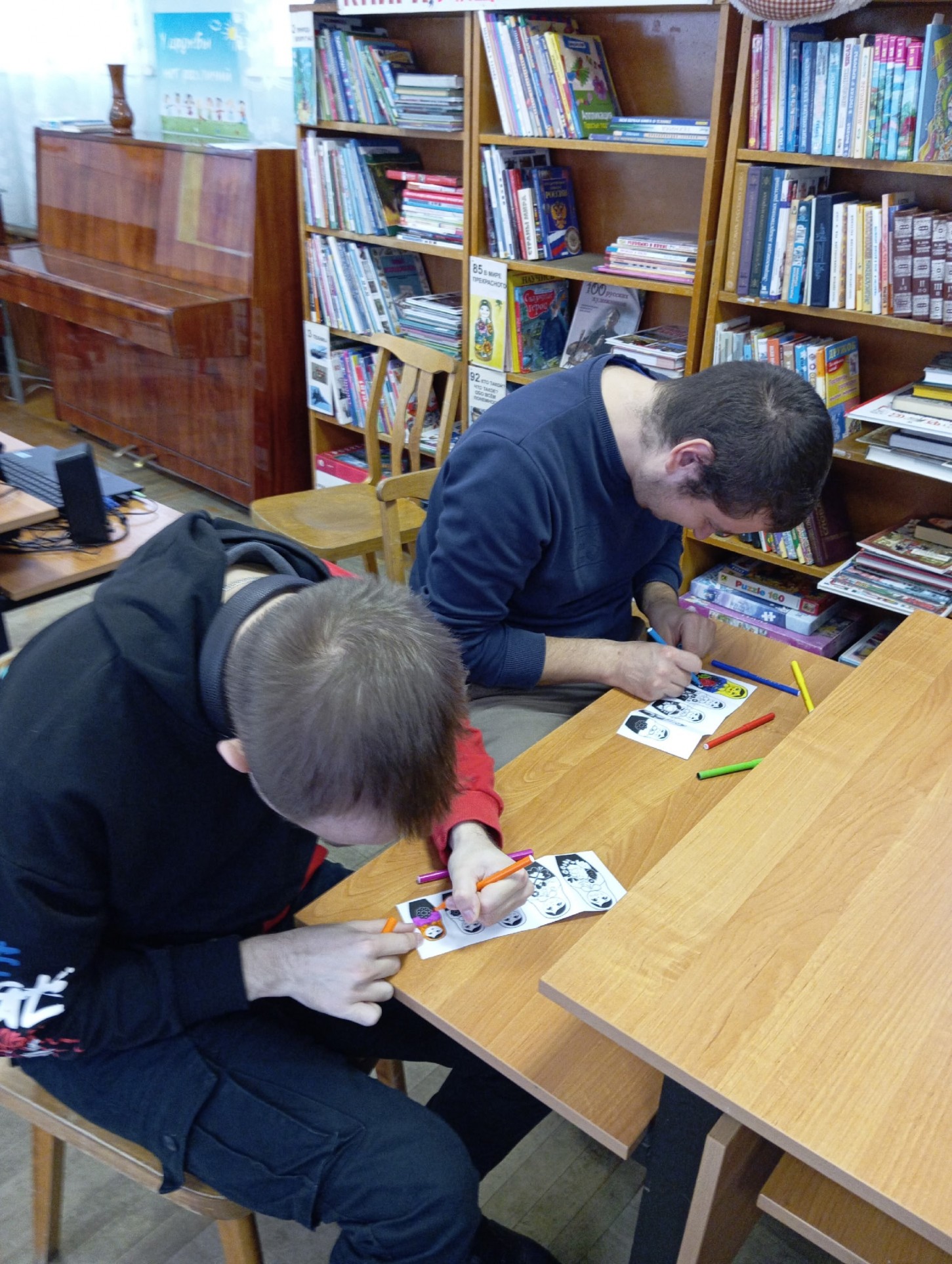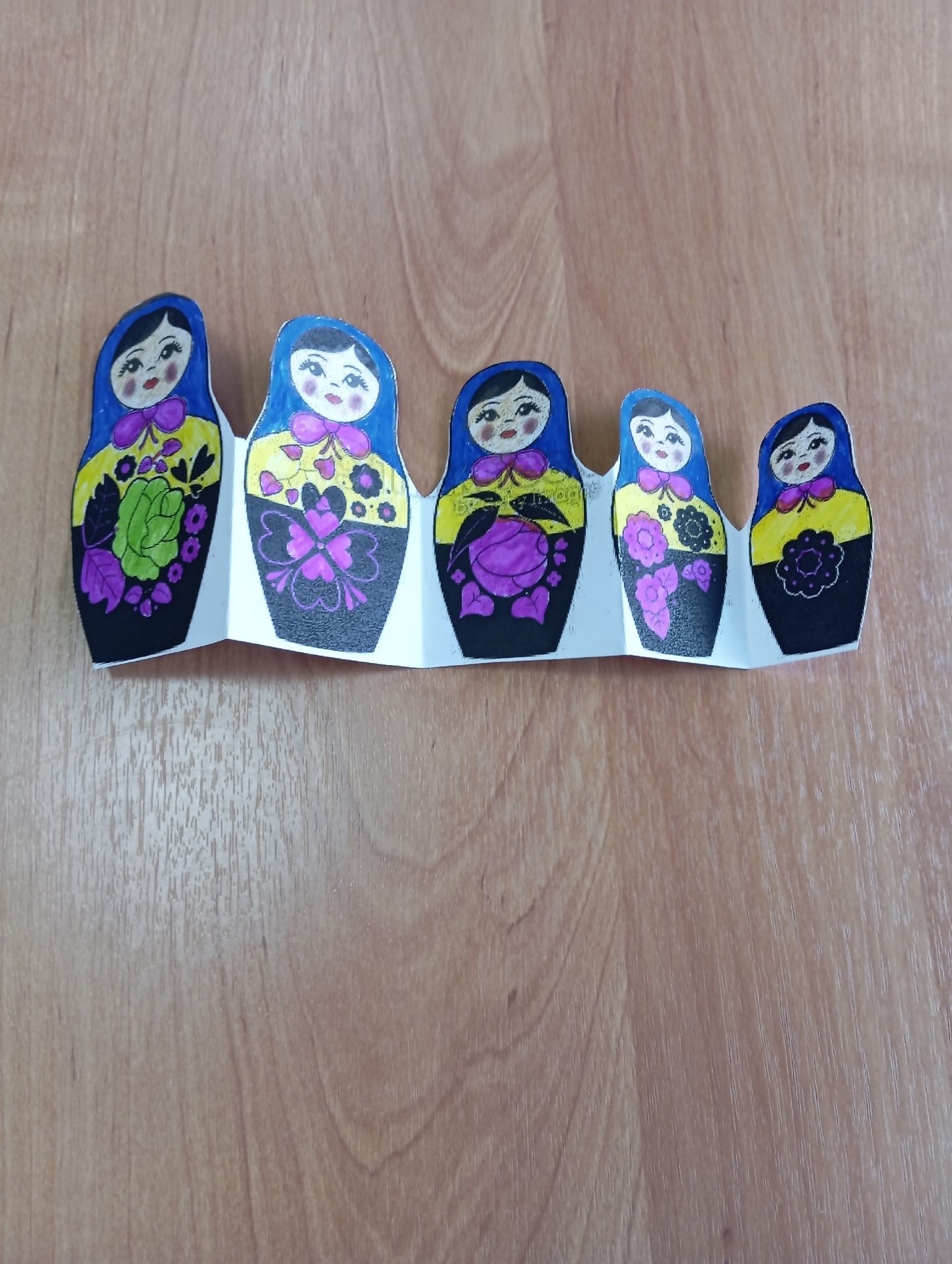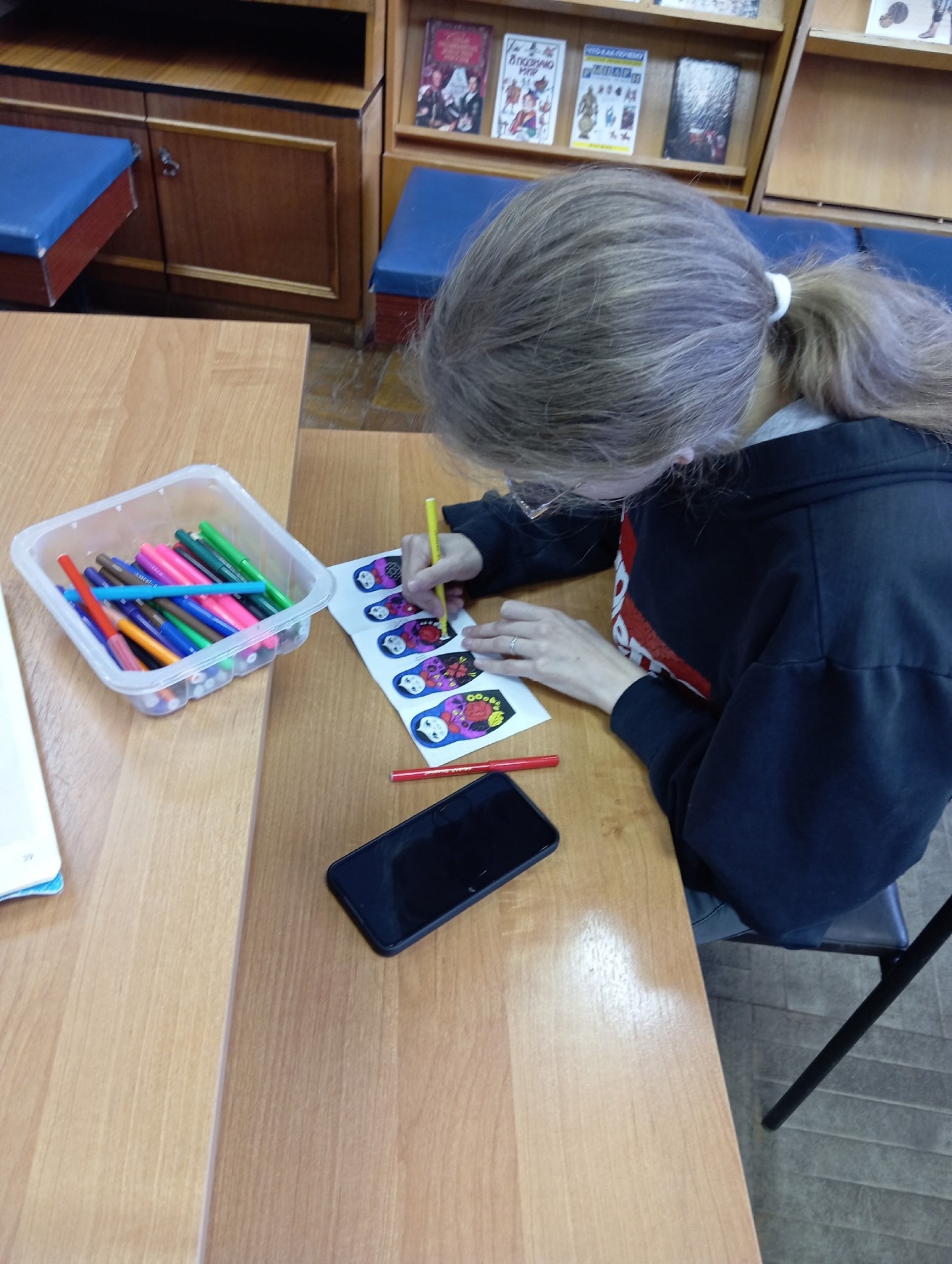Во время мероприятия наши гости узнали историю создания матрёшки, почему именно это имя получила игрушка, технологию её производства, а также какие секреты она таит в себе и почему является символом России наряду с самоваром и берёзками. При просмотре презентации "Матрёшка - гордость и символ России" ребята познакомились с характерными особенностями формы и росписи матрёшек из Сергиева Посада, Семенова, Полховского Майдана и Вятки, с многообразием данной игрушки и узнали о том, что наша Семёновская 72 - местная кукла является самой большой в мире и занесена в "Книгу рекордов Гиннесса", а первый в мире музей матрёшек открыт в 2001 году в Москве. В завершении тематического часа был проведён мастер-класс по созданию и росписи бумажной матрёшки "Собери свою матрёшку".