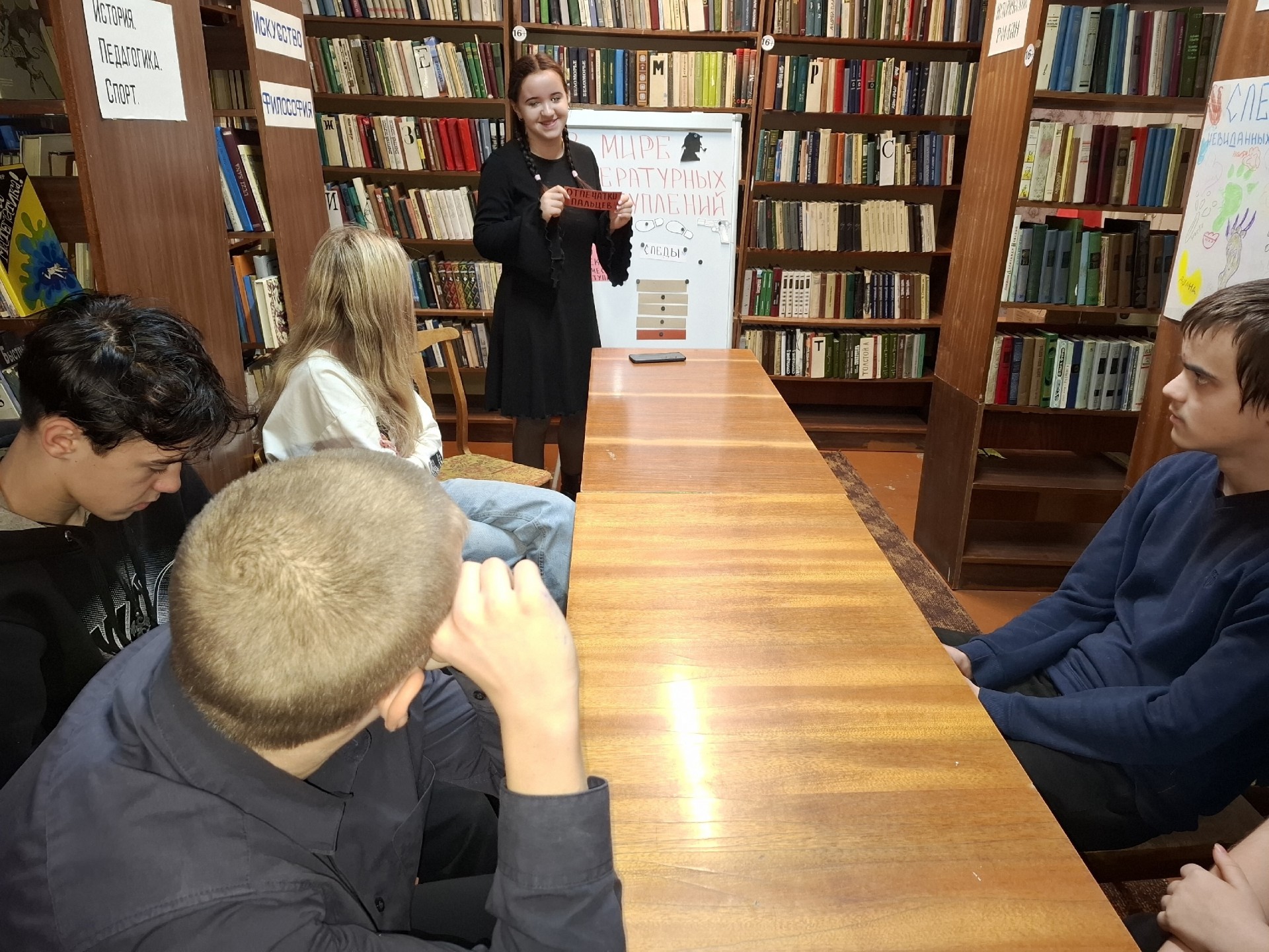 Тренировались ребята в расследовании литературных преступлений. Освежили в памяти профессиональную лексику и вспомнили, что ищет детектив на месте преступления. Затем провели литературное опознание, угадывали героя по фотороботу, читали шифр с помощью зеркала и искали правдивые факты из литературы. Расследование прошло успешно!