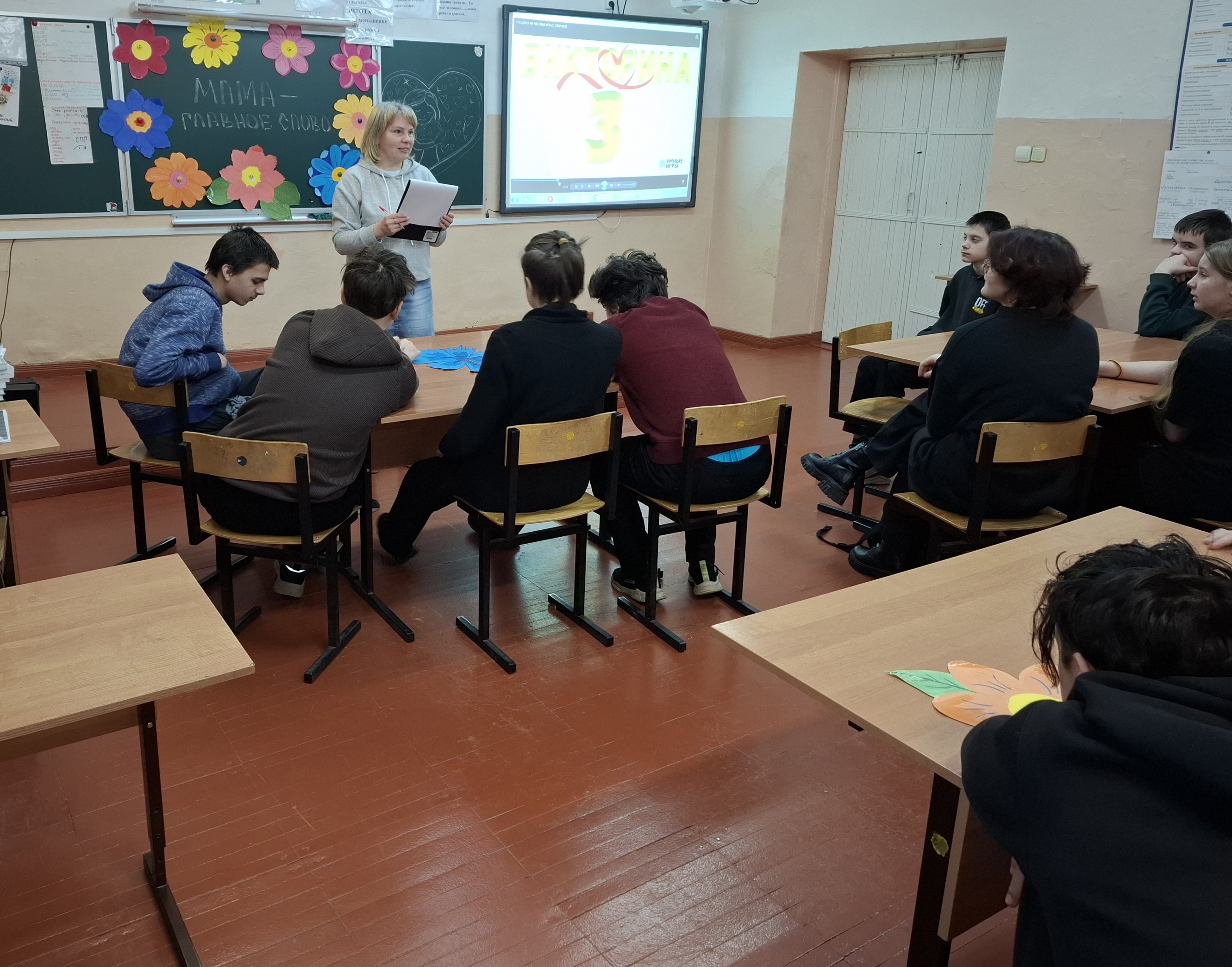 Ребята вместе с советником директора по воспитанию Еленой Зиновьевой и библиотекарем Ириной Васильевой проверили свою логику, знания, смекалку и удачу, отвечая на вопросы о традициях, связанных с Днём матери, а также знаменитых матерях в истории и литературе.