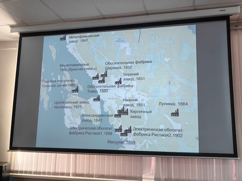 Евгений Геннадьевич упомянул и о технологии производства сплавов, о непростой доле заводских рабочих, в том числе детей, работавших на сортировке руды, а также значимости продукции Верхнего завода для развития промышленности . Выступление свое сопроводив демонстрацией архивных документов, фотографий, найденных в ходе исследования. Внимание в своей лекции он так же уделил воспоминаниям очевидцев, приехавших в Питкяранту в 49- 50-х годах, ставших свидетелями остатков когда-то бурно развивавшейся промышленности на территории Питкяранты.