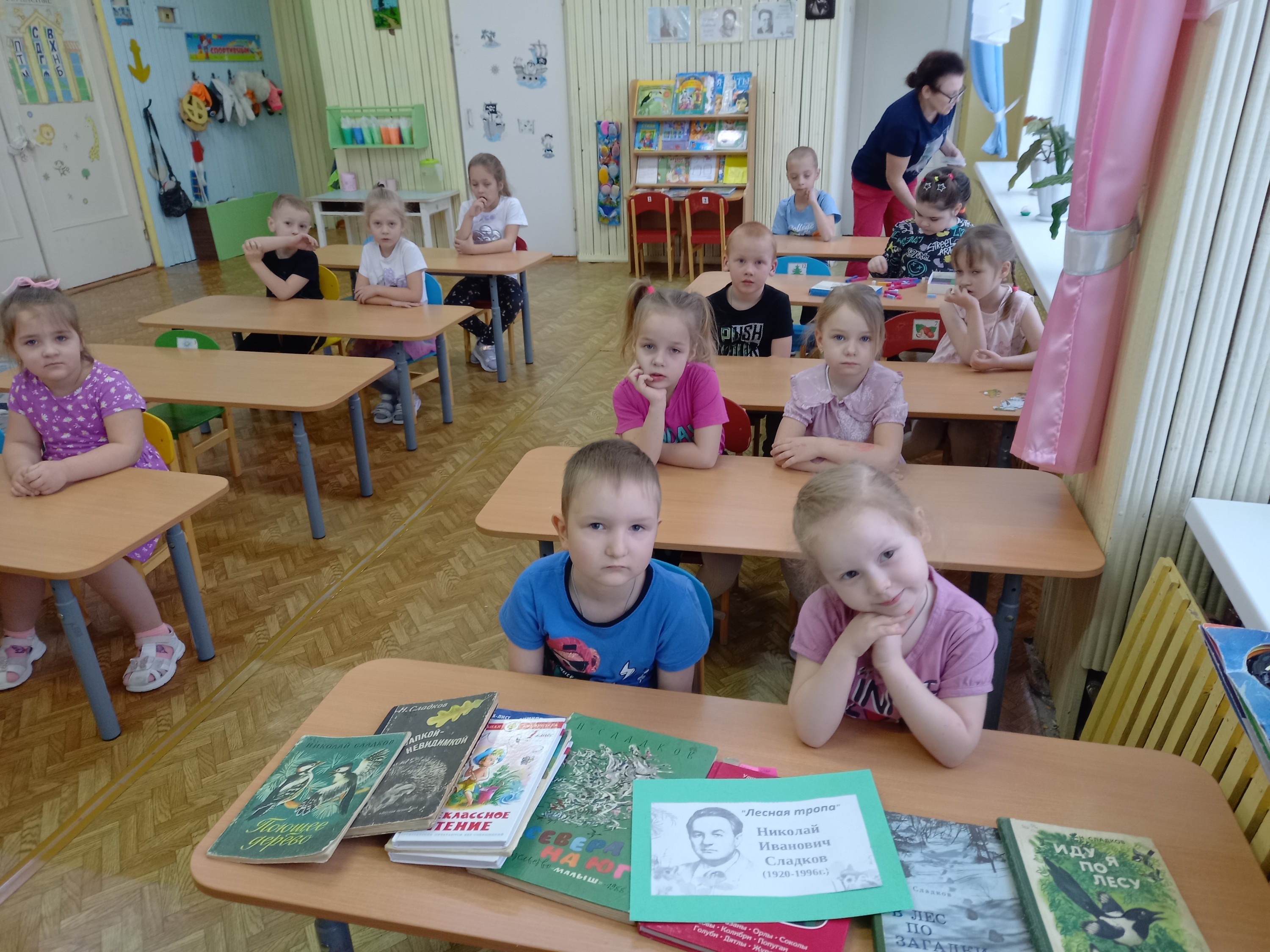 Николай Иванович Сладков написал более 60 книг о природе. Он был не только писателем, но и исследователем, фотоохотником и защитником природы. Наши юные знатоки природы внимательно слушали, отвечали на вопросы, отгадывали загадки, делились своими наблюдениями. В книгах Сладкова можно найти не только рассказ о жизни многих лесных обитателей и об их отношениях, но даже узнать, о чем они говорят и думают!