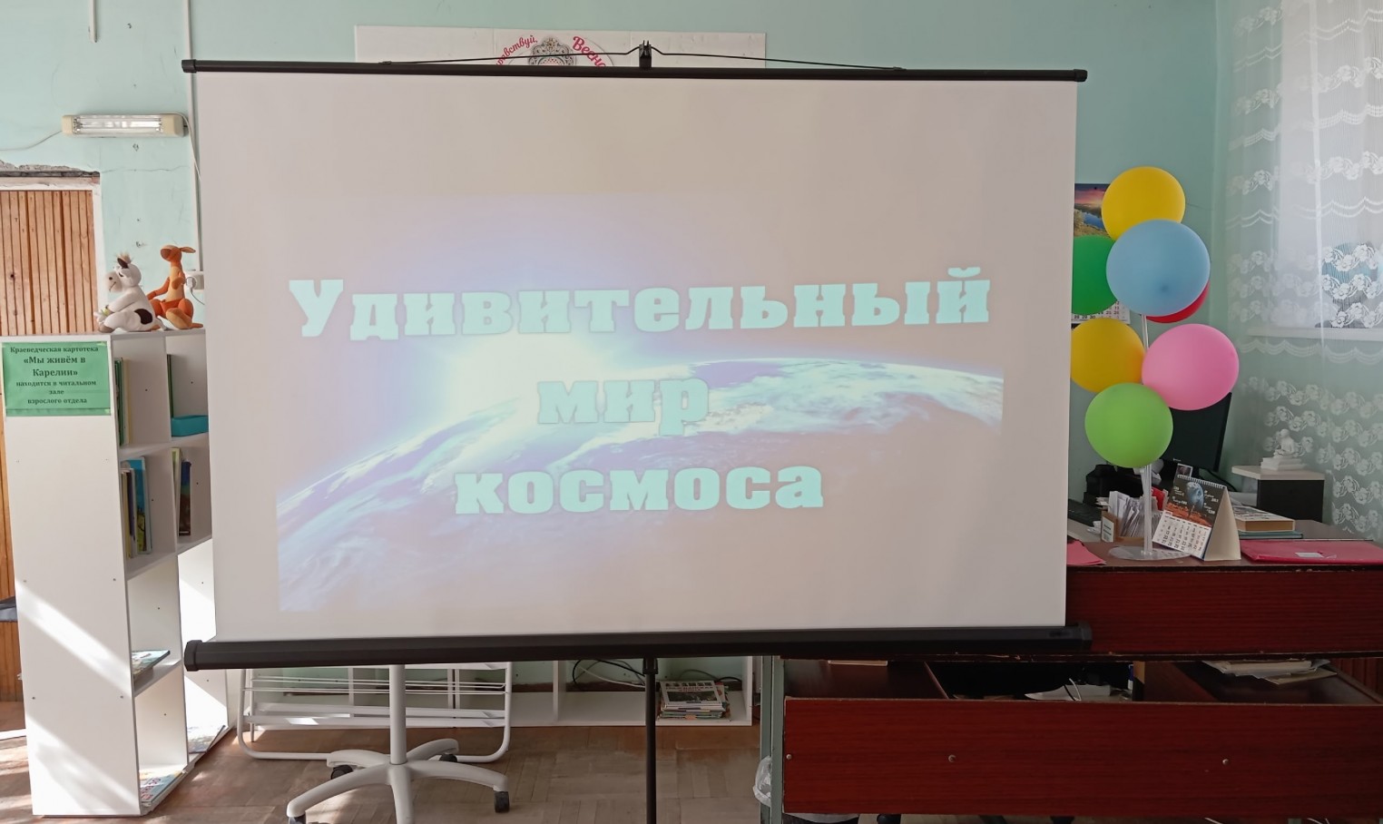 В роли проводника в бескрайнюю Вселенную выступил библиотекарь, он не просто рассказывал про космос, а вёл своих слушателей по звёздной карте через чёрные дыры неизведанного и туманности забытых фактов, оживляя её кадрами яркой презентации. Маршрут был проложен по удивительному миру космоса и начался с облёта планет Солнечной системы с остановкой на Марсе, чтобы полюбоваться прекрасным голубым закатом и побывать в каньоне Долина Маринера, продолжился экскурсией к самым ярким звездам и экзопланетам, а закончился путешествием во времени от первых чертежей Циолковского до триумфа Гагарина.